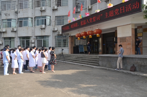 根据市民政局关于做好庆“七一”有关活动的通知要求,为庆祝建党97周年,进一步加强党员队伍建设,发挥基层党组织战斗堡垒作用,经院党总支研究决定,组织医院党员、职工100余人于2018年6月29日上午在院门诊大楼前举行了“升国旗、唱国歌”和“重温入党誓词”主题党日活动。